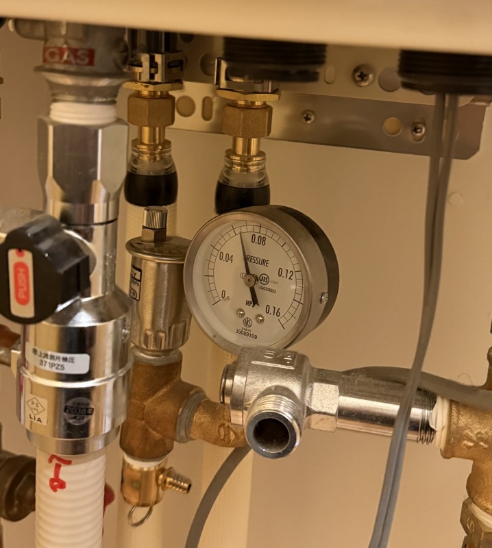 圧力計は暖房が停止している状態で0.06MPs程度。